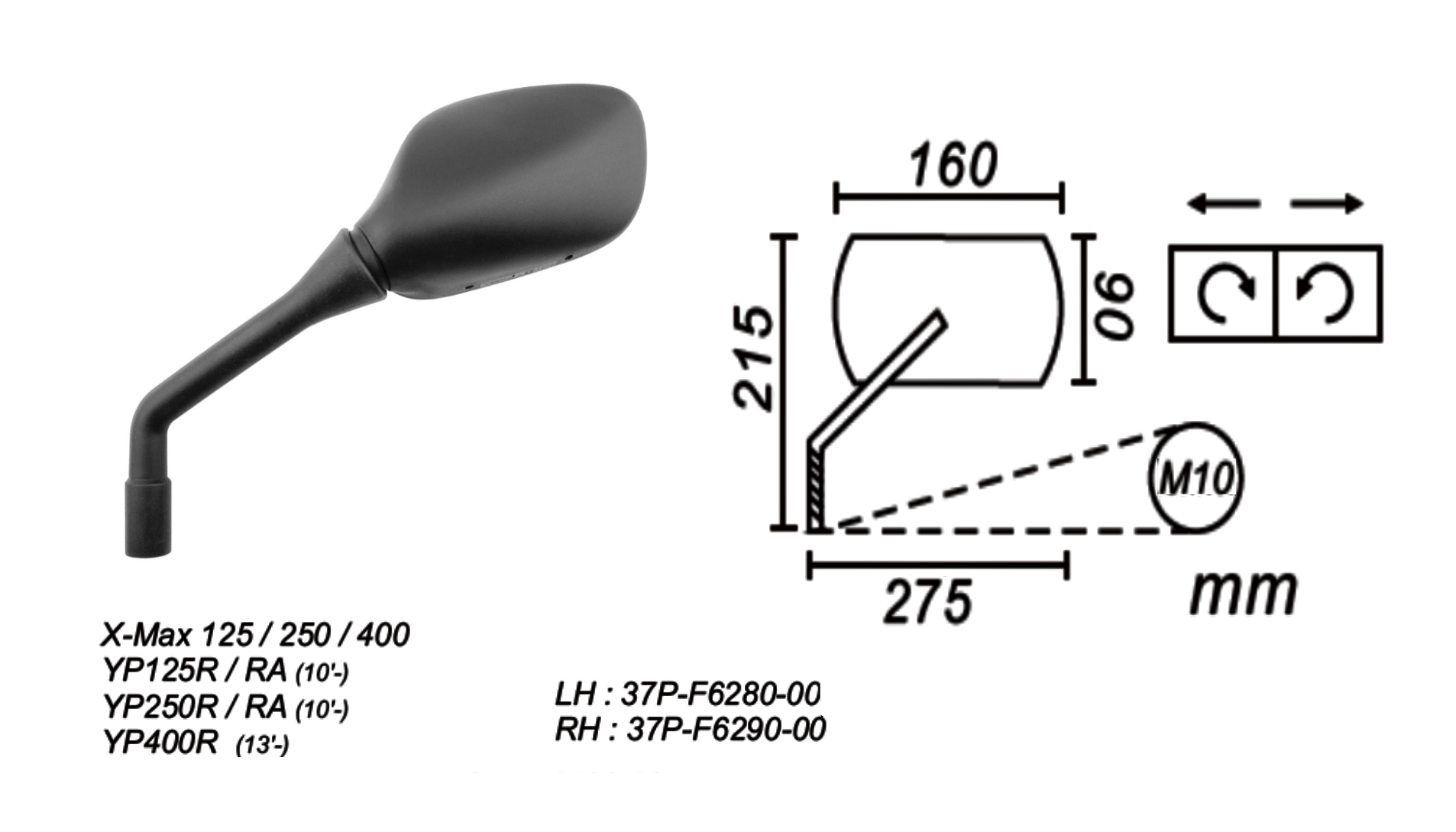Lusterko Lewe Yamahax-Max 125/250/400, Yp 125/250/400 2010-… Power Force