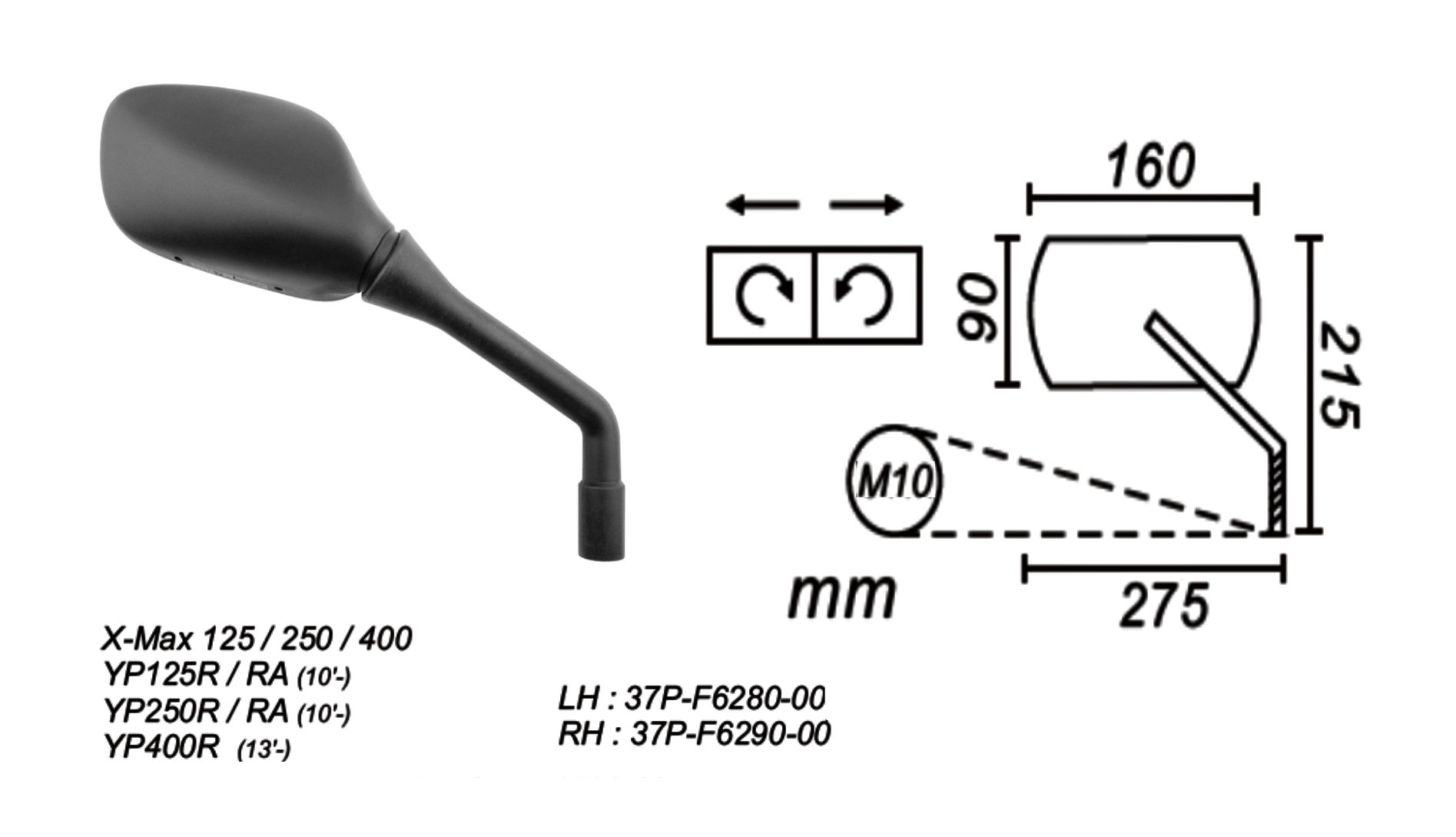 Lusterko Prawe Yamaha X-Max 125/250/400, Yp 125/250/400 2010-… Power Force