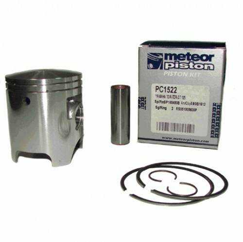 tłoki meteor do silników dwusuwowych wykonywane są metoda odlewania ze stopu aluminium o 18 % zawartości krzemu. wysoka zawartość krzemu zapewnia znikomą rozszerzalność tłoka przy wysokich temperaturach dając gwarancję długiego i bezproblemowego działania tłoka w silniku , nawet w ciężkich warunkach. odlewy tłoków są poddawane wygrzewaniu w wysokich temperaturach . sześćdziesięcioletnie doświadczenie w produkcji tłoków pozwoliło na produkcję tłoków lekkich , wytrzymałych na zużycie , o małym wskaźniku tarcia. w celu zmniejszenia tarcia oraz przedłużenia żywotności tłoka płaszcz tłoka w procesie produkcji jest napylany warstwą molibdenu. pierścienie tłokowe pochodzą od japońskiego producenta , lub włoskiej firmy caber.