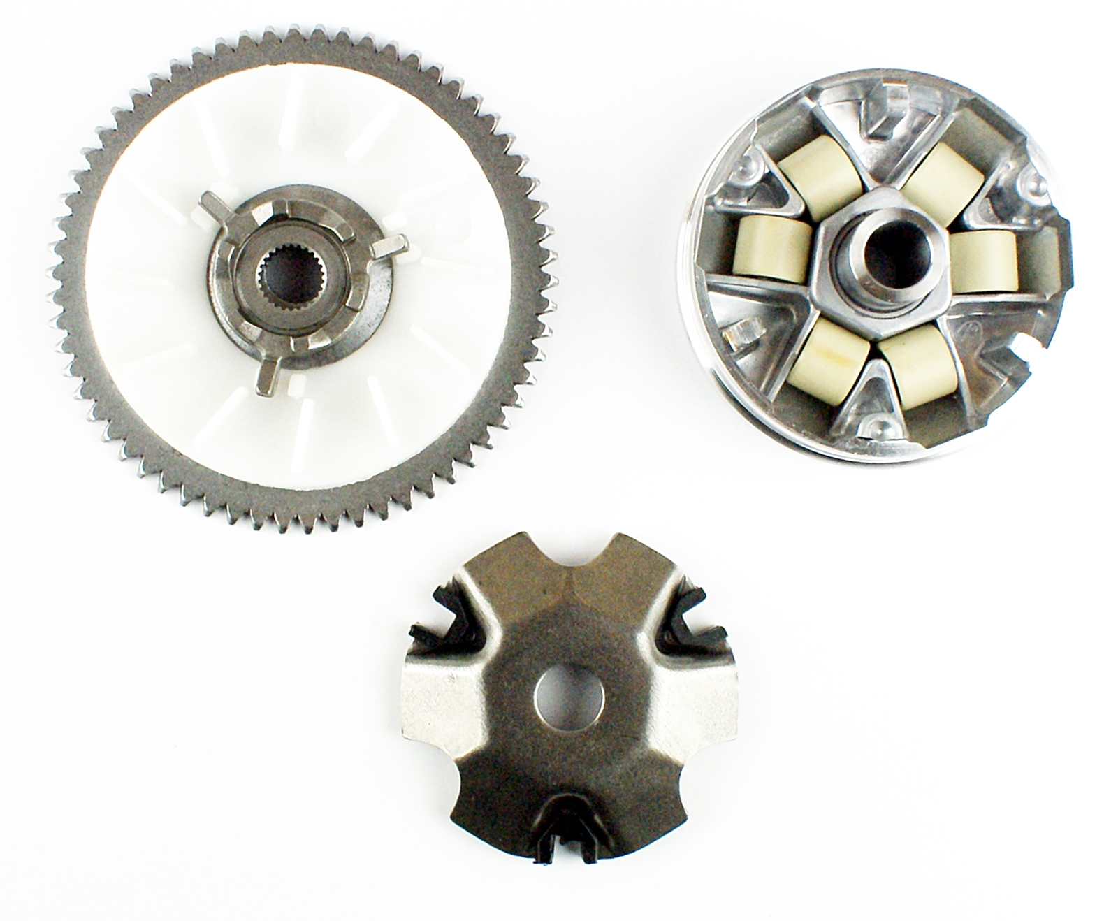 Wysokiej jakości kompletny wariator przeznaczony do silników gy6 4t. podstawa wariatora jest wykonana z wytrzymałego aluminium. w komplecie znajdują się: – rolki 16×13 4,5g – podstawa wariatora – zbierak – tuleja – tarcza – ślizgi – tarcza zewnętrzna – wiatrak pasuje m.in do:
